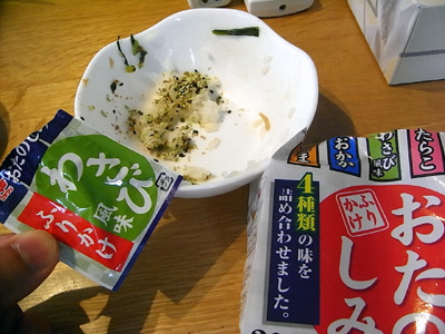 ワサビのふりかけをかけすぎたのだ。 |