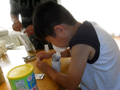 吸入しながら、薬の調合のお手伝い。
