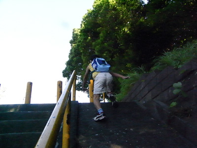 苦手だった坂も、手すりを使わずあがれるように。 まいあさとっくんしてるからね〜! 鼻高々のSであった。 |