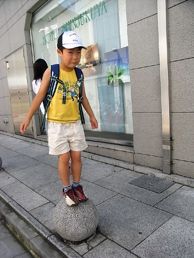 帰り。 玉オブジェを見つけ・・・。 しゃしんとって・・・! 懐かしいんだろうが、 なぜそんなおっかなびっくり? |