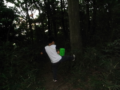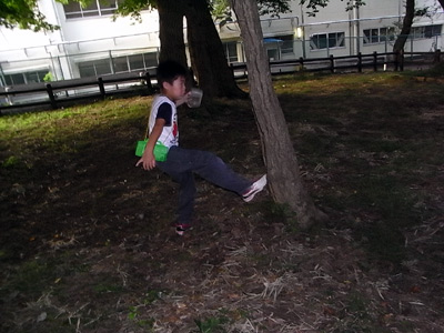 公園で、くわキックの練習。 |