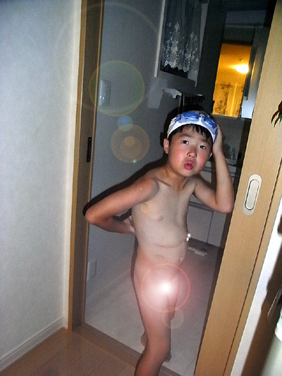 風呂もゴーグル着用。 |