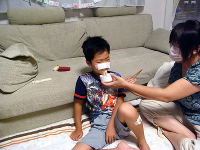 仕方無しにガーゼで患部を覆った。 |