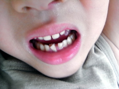 朝からグラグラの歯が気になるS。 でもまだビビって抜かせようとしない。 |