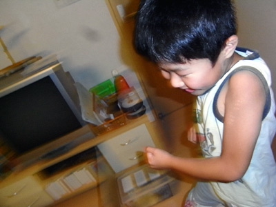 はがぬけた!はがぬけた! いたい!いたい! と叫びながら、 ニコニコで部屋を走り回る。 |