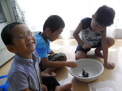 イキナリの3兄弟となった。 自慢のカブ軍団で遊ぶ子ら。 |
