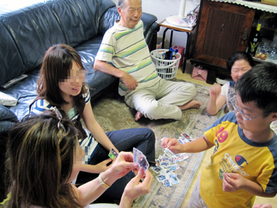 平成22年8月11日(水) 今日はおママのいとこのTお姉さんと姪っ子のE親子が来たそうで、 Sには『飛んで火に入る』である。 トランプなどで目一杯遊んでもらったようだ。 Sに会ったのはまだNICU、ガラス越しの面会だった。 大きくなったSに驚いていた。