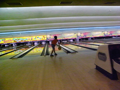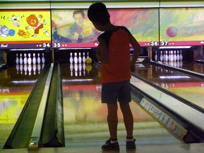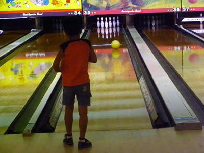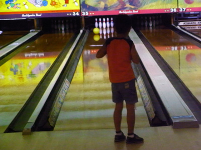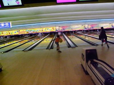 通常のガーター有りを希望したSであったが、 見かねた係員がガーターの柵を上げてくれた。 |