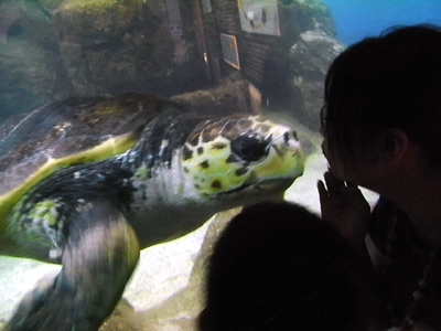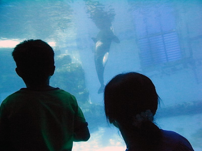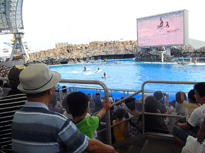 シャチ効果かお盆だからか、 イルカショーは満席だった。 |