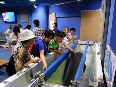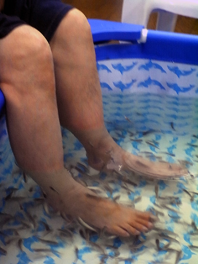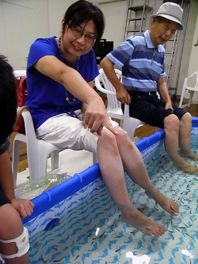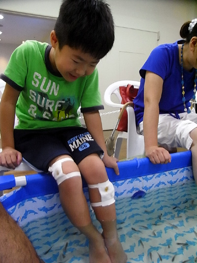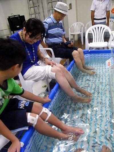 水族館の外にドクターフィッシュの体験コーナーがあった。