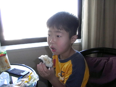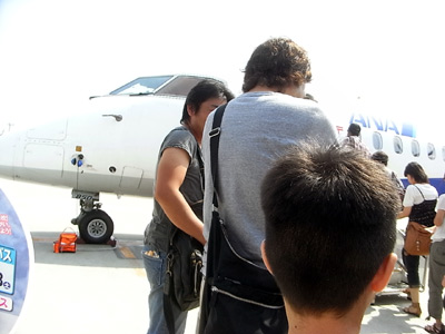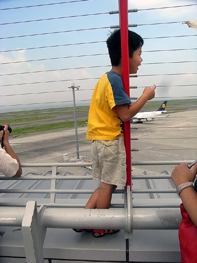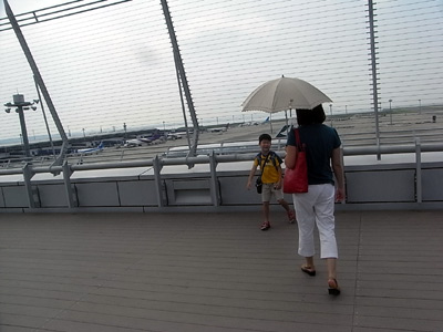 猛暑も苦にせず、飛行機に釘付けであった。 |