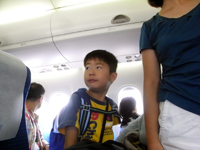 離陸してしばらく、電子機器の使用許可が出てから撮影。