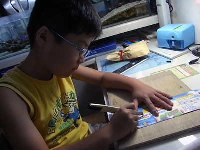 初めてカッターを使っての工作、