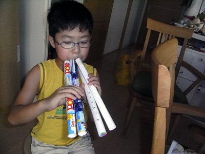 牛乳パックで縦笛作り。 |