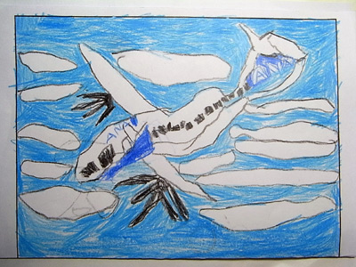 絵日記。 (機体が)凹んじゃった! と慌てていたそうだが、 上手く書けているじゃないか。 |