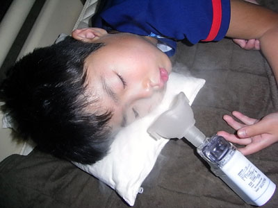 時間がなかったので、 就寝中に置きネブライザー。 |