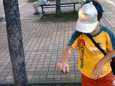 生きたセミを摘めるようになった。 これまで激しい動きが怖くて触れなかった。 |