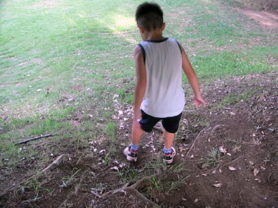 樹の根っこが気になったようだ。 |