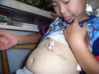 普通の小児は食事をすると、内容物で膨れた胃で、そのままお腹までが膨れてしまう。