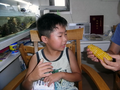 おママの大好物のトウモロコシ。 が、皮があるものは鶏以外、総じて苦手。 |