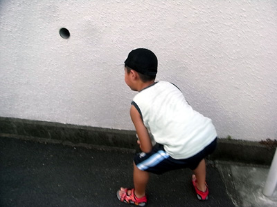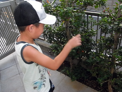 夕方、ダンゴムシ狩りに。 土が乾いてるだろ、居やしねぇって。 今年の夏は異常だな。 |