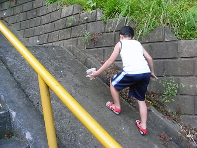 ダンゴむし〜!! 相変わらず、踵体重。 挙げろと言っても1歩2歩。 本人が必要と思わなければ、 馬耳東風、のれんに腕押し。 でも手すりに頼らず、 しかし上れるようになった。 成長はしているのだな。 |