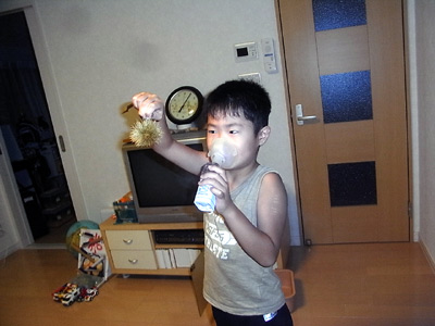じぶんのなまえをかんじでかいた! (自分の名前を漢字で書いた!) もう、そんな事までできるようになったか。 |