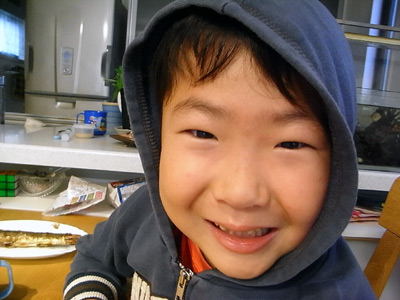 寒いというので、昔のパーカーを着せてみた。