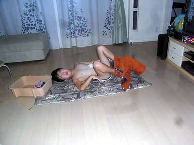 朝の着替え中のS。 |