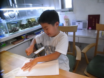 Z会の添削が帰ってきた。 おママのペーパーナイフ、 向きを間違えて曲げてしまった。 なぜ向きがわからない、Sよ・・・。 |