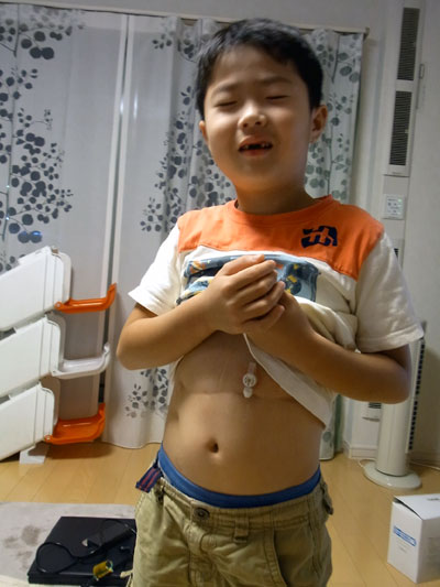 あ〜もう、おなかいっぱい〜!! と、遠回しに薬を胃ロウから入れろと。 ったく、仕方ねぇ〜なぁ〜・・・。 |