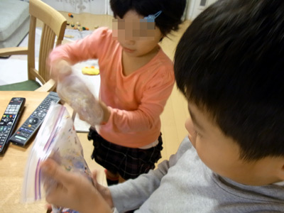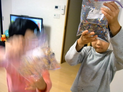 もっと振るの!! さすがにそれは混ざらんて・・・。 |