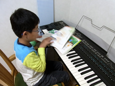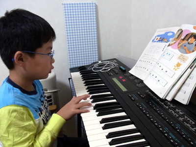 ピアニカのテストがあるとかで、 自ら特訓を志願したS。 キーボードで練習だ。 |