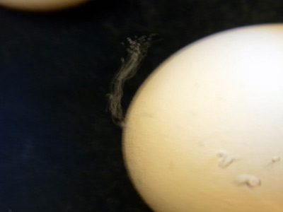 こんなふうに気泡が出てくる。 二酸化炭素なんだそうな。 TVで見た裏技である。 |