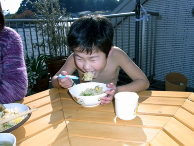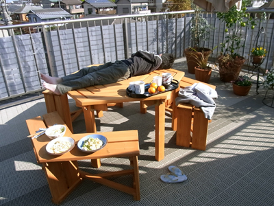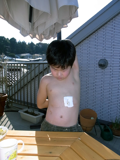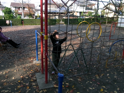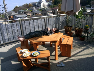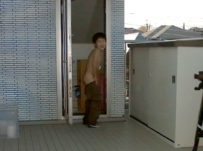 あつ(暑)い! と脱ぎだしたS。 もう12月も間近なんだがな・・・。 |