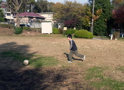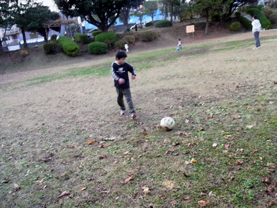 先にサッカー、後に遊具って決めたんだから、先に思う存分やっとけよ。