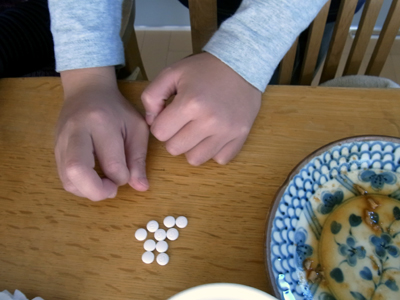 たった1cm程度のジュースで飲み下す。 |