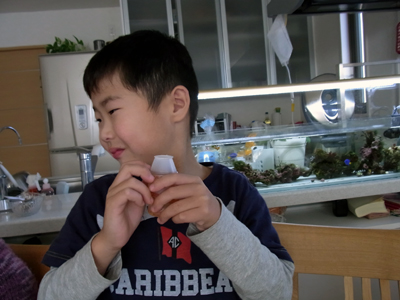 鼻から白いキノコ生やすも、 やはり2〜3口で撃沈。 |