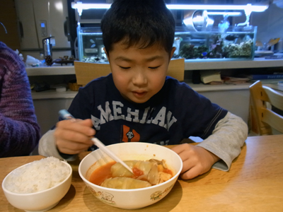 夕食は最近の好物、ロールキャベツ。 |