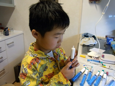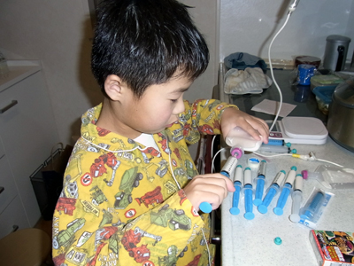 久しぶり、 脂肪乳剤のシリンジ充填のお手伝い。 |