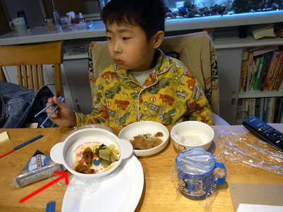 空き皿が多いのは、Sが昼食後にお皿を片づけなかったから。