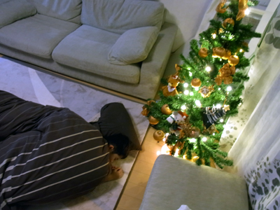 寝ないなら、落としてみせようホトトギス。 ホットカーペット上で押さえつけたら、 案の定、すぐに寝てしまった。 |