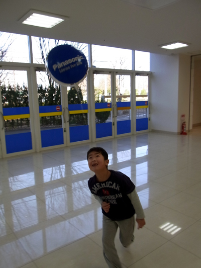 ヘリウム風船で戯れるS。 |