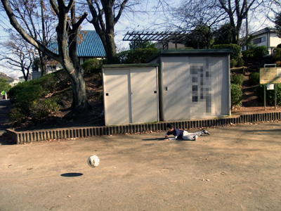 ゴールキーパー、横っ飛び。 ・・・最初から横に寝そべっている。 ・・・砂だらけ。 |