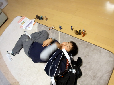 帰宅後、ゴロリと横になるS。 |