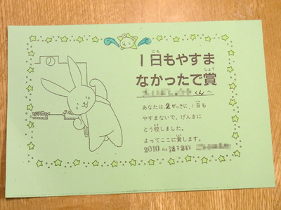 今期も奇跡の「1日もやすまなかったで賞」をもらってきた。
