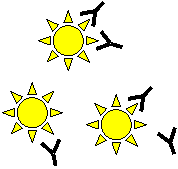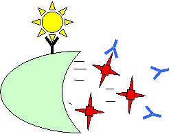 体はそれを異物と判断し(これがアレルギー)、 アレルゲンにひっついてやっつける抗体を向かわせる。 |