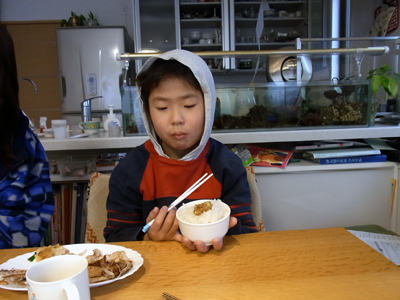 きもちがわるい・・・。 と、ゴロリ横になってしまう。 鼻水で、お腹が一杯か? |