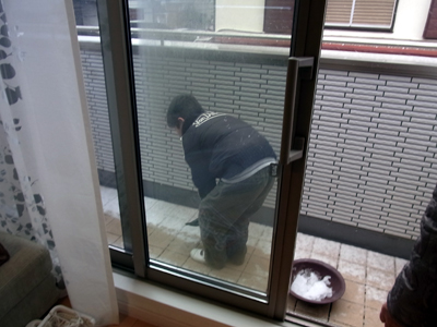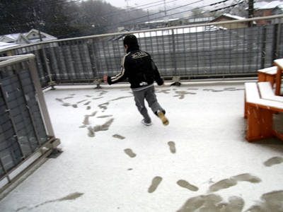 ベランダの雪を・・・。 |