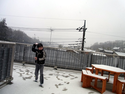 朝からの雪に大喜び。 |